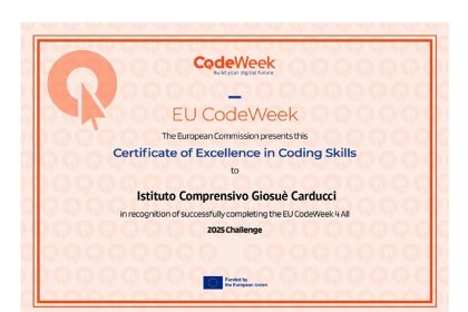 Il Dirigente scolastico Salvatore Parenti ringrazia i docenti dell’Istituto “Carducci”, insignito del Certificato di Eccellenza EU CodeWeek 4 All 2025