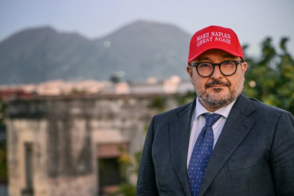 Sangiuliano come Trump con il cappellino rosso e la scritta “Make Naples great again”