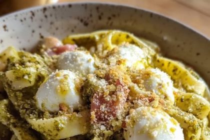Fusilli di Gusto: Linguine con Pesto di Pistacchi, Bufala e Pancetta