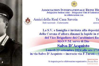 L’Associazione deporrà, lunedì 23, una Corona d’alloro ai piedi della lapide del Vice Brigadiere dei Carabinieri Salvo D’Acquisto