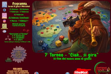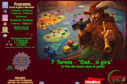 Risiko Club Ufficiale “Il Pifferaio” di S.Cataldo. Avvio del 7° torneo interno “Ciak..si gira”. Locandina
