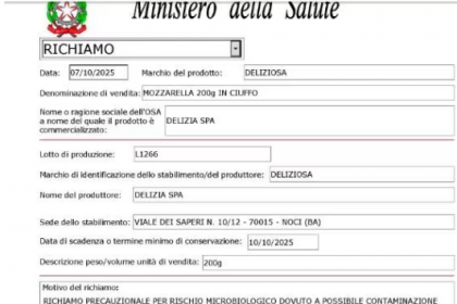 Come spiega l’avviso di richiamo, il ritiro della mozzarella in busta è…