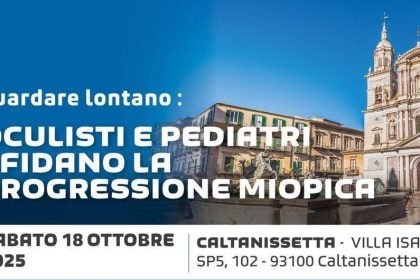 A Caltanissetta il convegno “Guardare lontano: Oculisti e Pediatri sfidano la Progressione Miopica”. Locandina