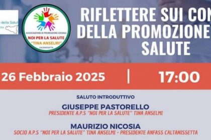 “Riflettere sui contesti della promozione della salute”. Giorno 26febbraio alle 17,00 nella sala del “Villaggio dei Semplici” (Via S.M. Mazzarello N°1) a San Cataldo