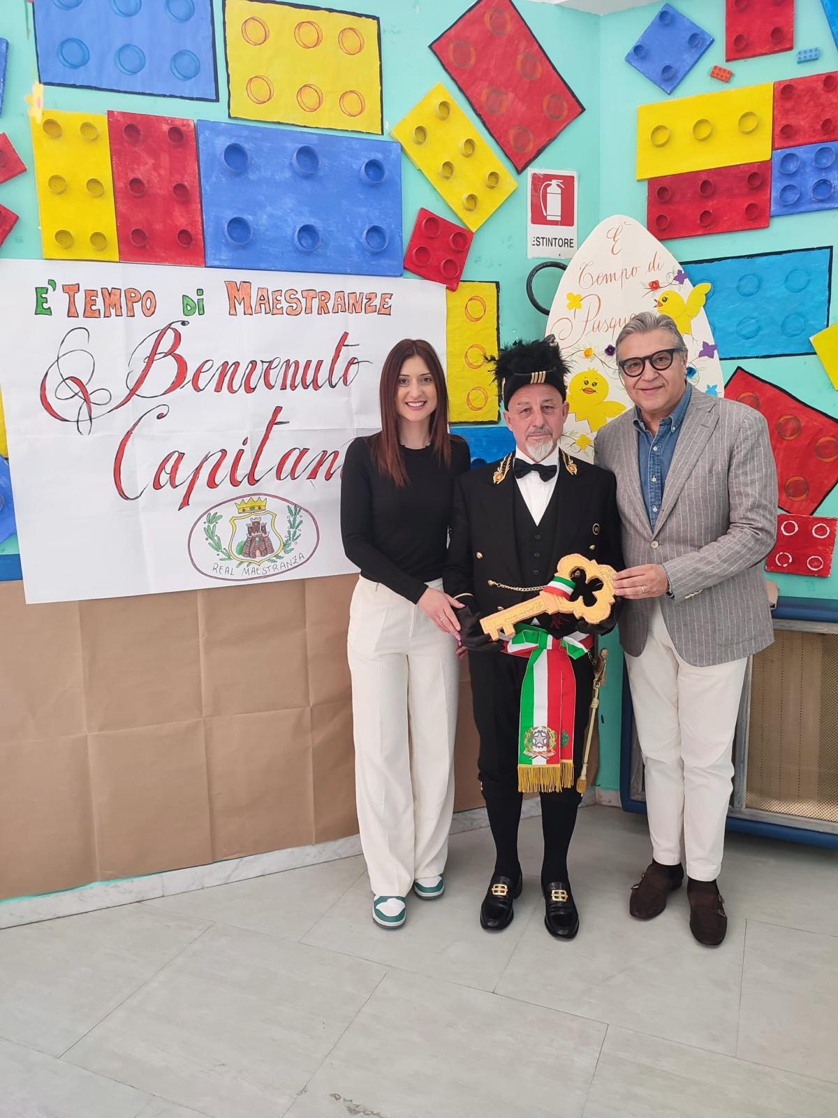 Il momento più emozionante si è avuto con la simbolica consegna della chiave da parte dei bambini al Capitano Villanucci – un gesto che richiama il tradizionale passaggio delle chiavi della città da parte del Sindaco durante la storica processione della Settimana Santa.