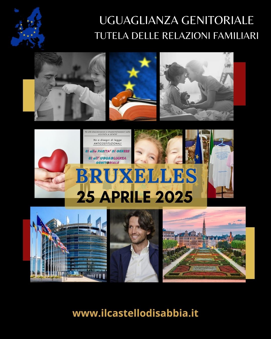 “Dopo il grande successo ottenuto in tutta Italia, la delegazione nazionale (Uguaglianza Genitoriale e Tutela delle Relazioni Familiari), in attesa di presentare “la carta del diritto all’Uguaglianza Genitoriale e sulla Tutela delle Relazioni Familiari”, composta da Avvocati specializzati di diritto internazionale di famiglia, Psicologi Forensi, Mediatori Familiari e genitori separati tra cui lo scrittore Davide Vinciprova, autore del libro “Il Castello di Sabbia” che il 5 luglio 2025 all’evento internazionale del Castello Vinciprova, presso il comune di Pollica (SA), verrà proclamato e riconosciuto ufficialmente come “documento storico dell’uguaglianza genitoriale e della tutela delle relazioni familiari, Venerdì 25 Aprile 2025 a Bruxelles, presenterà il primo incontro culturale della campagna europea di sensibilizzazione.