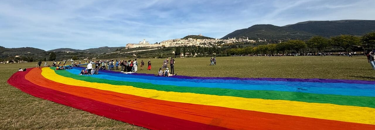Secondo le prime stime, si tratta di una delle edizioni più partecipate degli ultimi anni. Alla testa del corteo, il cui arrivo ad Assisi è previsto per le 15, sfilano un grande striscione con la parola “Fraternità” e un drappo con i colori dell’arcobaleno e della Palestina.