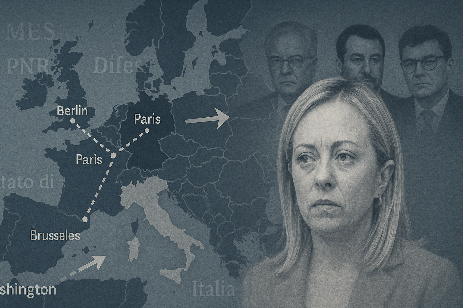Nel biennio 2024-2025 la posizione dell’Italia in Europa si è fatta via via più marginale. Ma non per un complotto delle cancellerie o per un supposto “asse franco-tedesco” che la escluderebbe a priori, quanto per una serie sistematica di scelte – e non scelte – che hanno scolorito l’immagine del nostro paese come partner affidabile. Dalla gestione ondivaga del Pnrr alla reticenza sulla ratifica del Mes, dall’ambiguità sull’aumento delle spese militari alla dissonanza diplomatica nei consessi multilaterali, l’Italia ha imboccato una traiettoria fatta di esitazioni, posture contraddittorie e politiche orientate più all’uso interno che alla costruzione di una linea europea coerente.